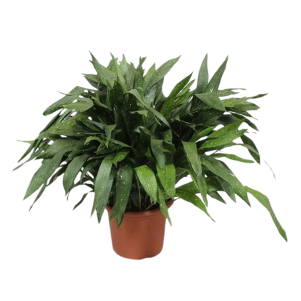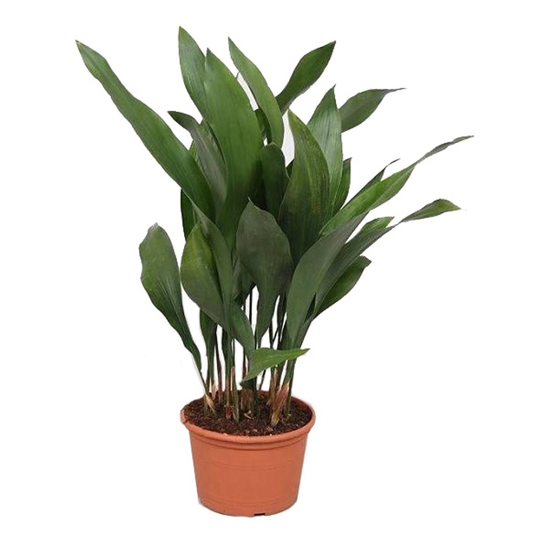 Аспидистра имеет крупные плотные листья насыщенного тёмно-зелёного цвета которые растут вертикально из-под корневища. Листья длинные овальные с ровным краем и глянцевой поверхностью что создаёт аккуратный строгий и благородный вид растения. Растение формирует красивый куст высотой до 50–80 см. Отличается высокой выносливостью выдерживает тень сухой воздух и нерегулярный полив. Идеальна для затемнённых интерьеров и офисов.