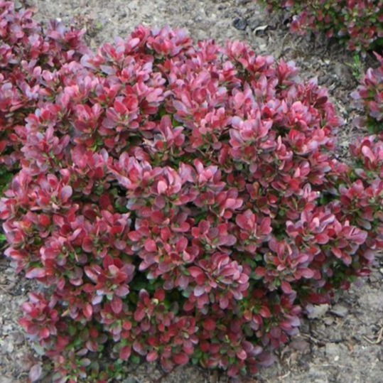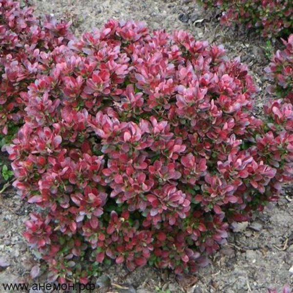 Карликовый кустарник с плотной шаровидной кроной. Листья мелкие, пурпурно-красные, сохраняют окраску весь сезон. Осенью приобретают ярко-красный оттенок. Высота взрослого растения около 0,5–0,6 м, диаметр до 1 м. Отличается устойчивостью к засухе и морозам, хорошо подходит для бордюров и невысоких изгородей.