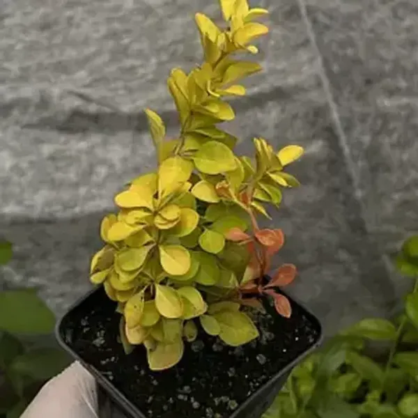 Декоративный кустарник высотой 1,2–1,5 м с густой кроной. Листья тёмно-пурпурные или бордовые, у сорта Rose Glow украшены розовыми и серебристыми штрихами. Осенью становятся алыми. Цветки жёлтые в мае, осенью формируются красные ягоды. Используется для живых изгородей, в контрастных группах и как акцент.