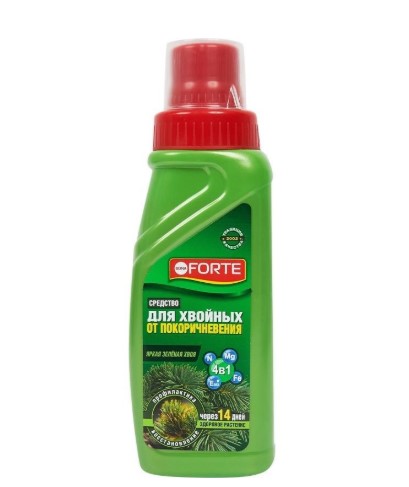→ Рекомендация Bona Forte: перед применением средства для хвойных желательно провести тест: небольшим количеством раствора опрыскивается небольшой участок хвои, если через некоторое время с этим участком все в порядке, то опрыскивается и все растение. Средство может быть использовано для восстановления растения в случае солнечного ожога.