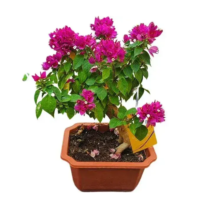 Декоративное лиановидное растение с овальными зелёными листьями и яркими декоративными прицветниками, окрашенными в розовый, фиолетовый, красный или белый цвет. Побеги гибкие, ветвистые, образуют плотную декоративную крону. Растение активно растёт и красиво цветёт в летний период, подходит для подвесных кашпо и больших горшков.
