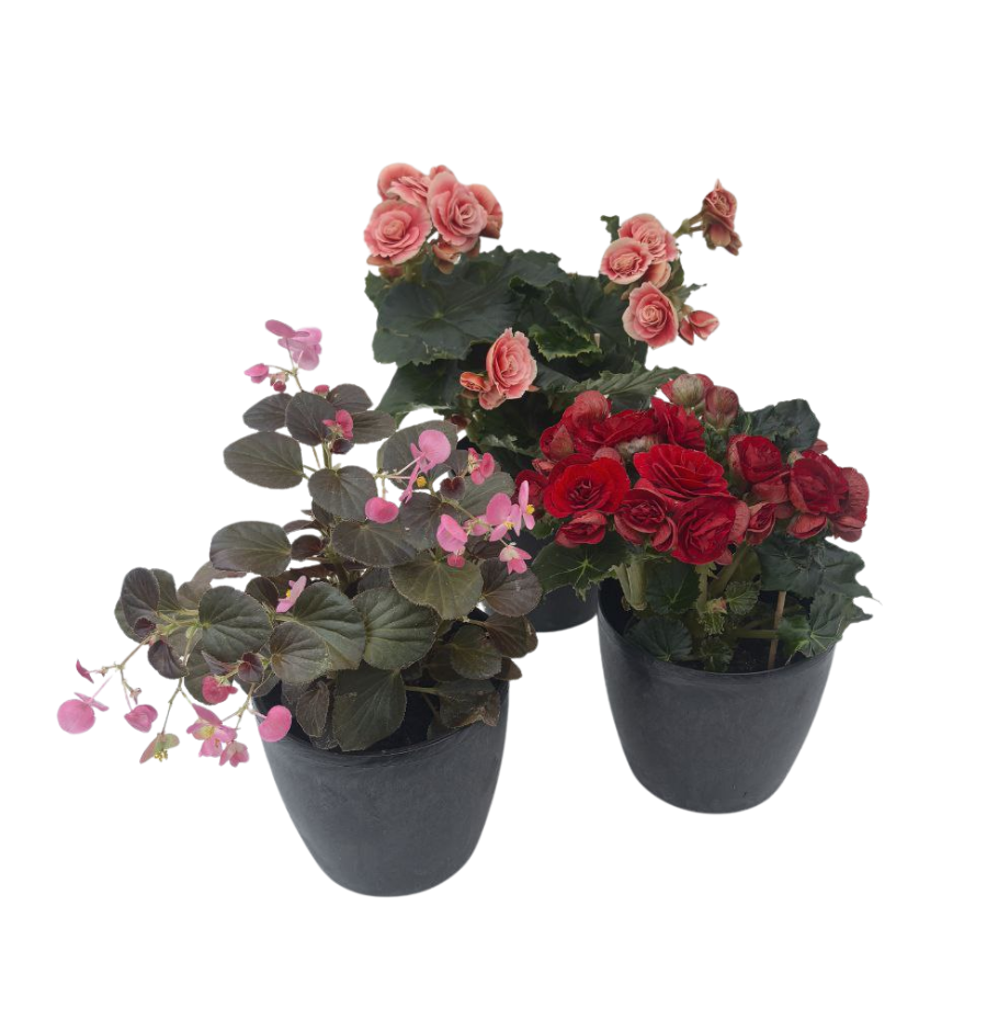 Пышное растение с разнообразием форм и оттенков листьев. Листья асимметричные, могут быть зелёными, бордовыми, серебристыми или пятнистыми. Структура листа бархатистая или глянцевая. Цветы нежные, белые, розовые или красные, собранные в соцветия.