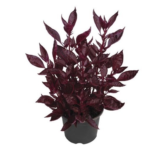 Яркое декоративное растение с овальными листьями насыщенно-красного, пурпурного или бордового цвета с розовыми прожилками. Куст густой, ветвистый, эффектно выглядит в композициях и как одиночное растение. При регулярной прищипке формирует плотную шапку листвы.