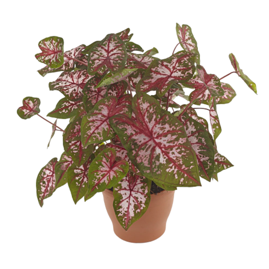 Декоративно-лиственное, клубневое растение с крупными сердцевидными листьями яркой окраски — сочетания розового, красного, белого и зелёного оттенков. Листья тонкие, полупрозрачные, с выразительным рисунком. В период покоя листья опадают. Очень декоративен, требует тепла и влажности.