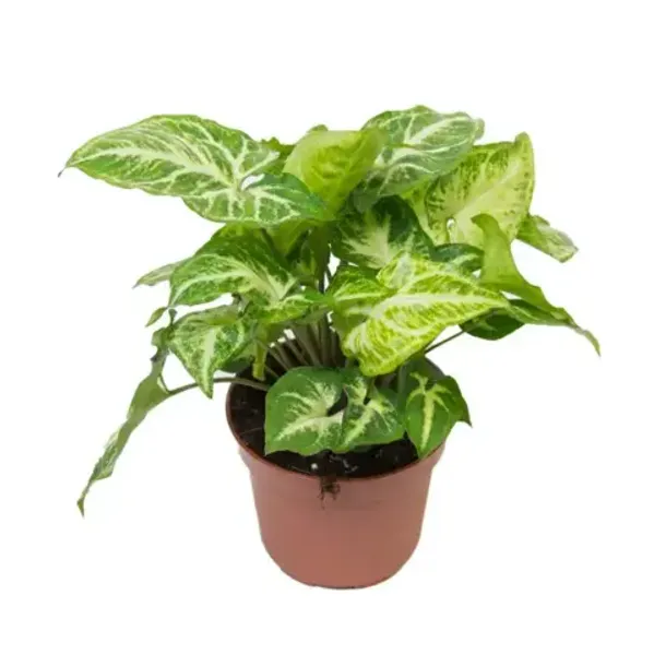 Декоративно-лиственное растение с изящными стрелковидными листьями, окрашенными в различные оттенки — от светло-зелёного до пестролистного с белыми, розовыми или кремовыми прожилками. В молодом возрасте формирует густой куст, а со временем побеги начинают виться, что позволяет выращивать его как ампельное растение или на опоре. Сингониум быстро растёт, легко адаптируется и придаёт интерьеру свежесть и живость благодаря плотной сочной листве.