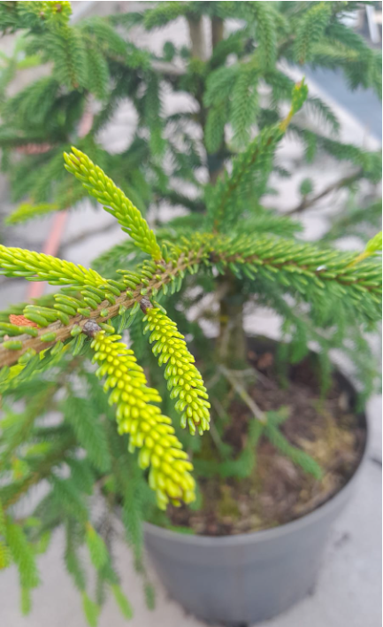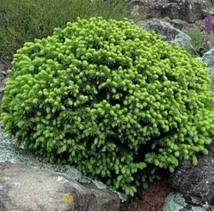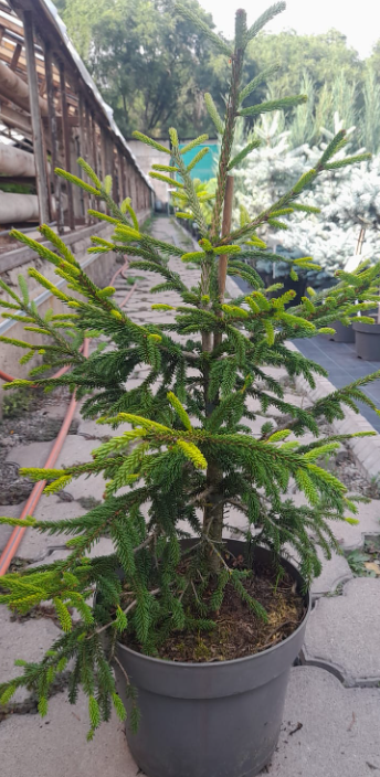 Медленнорастущая ель с широкой пирамидальной кроной, светло-зелёная хвоя с золотистым оттенком на побегах, декоративные шишки появляются уже на молодых растениях. Используется как акцентное растение в саду или на газоне.