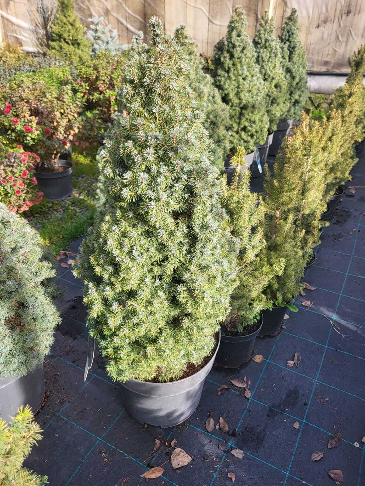 Очень декоративная ель с плотной пирамидальной кроной и яркой голубой хвоей, сохраняющей насыщенный оттенок круглый год. Особенно ценится за устойчивость к выгоранию на солнце и выразительный цвет хвои. В возрасте 10 лет достигает 1,5–2 м в высоту и около 1 м в ширину. Используется для декоративных посадок, альпийских горок, контейнерного выращивания и акцентных композиций.