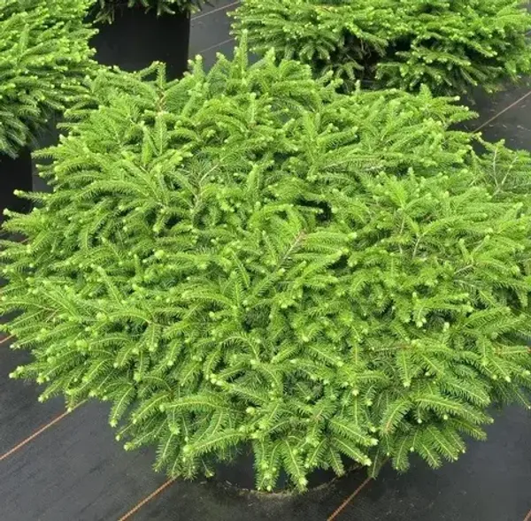 Карликовый сорт ели обыкновенной с очень низкой и широкой подушковидной кроной, напоминающей гнездо. Хвоя густая, мягкая, ярко-зелёная, сохраняет декоративность круглый год. Растёт медленно, используется для рокариев, небольших садов и посадок в контейнерах. Высота до 1 м при диаметре кроны до 2 м.