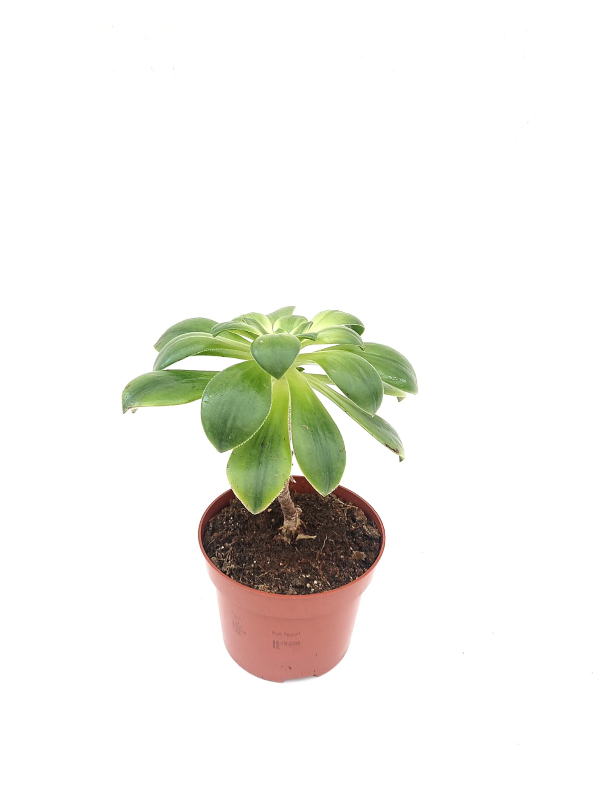 Суккулент с розеточными мясистыми листьями, образующими плотные, декоративные розетки. Листья зелёные или тёмно-фиолетовые, иногда с красноватым оттенком по краям. Растение растёт медленно, идеально подходит для композиций с камнями или как отдельный акцент в интерьере.