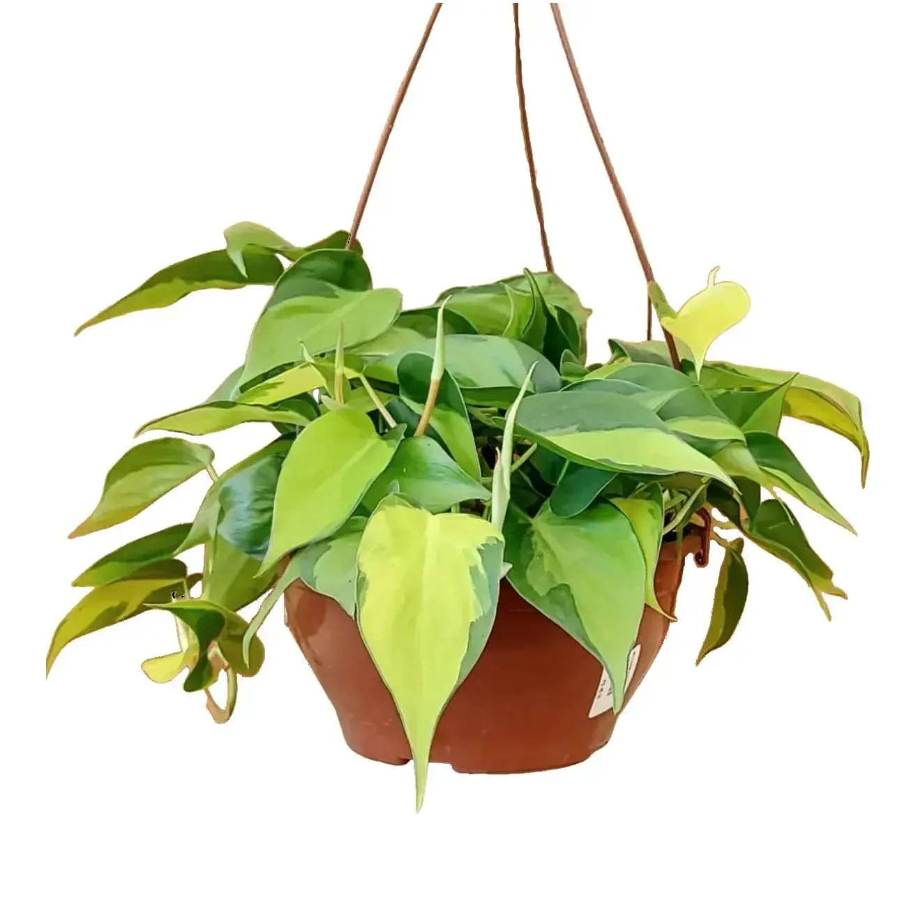 Компактная ампельная форма с пышными побегами, спускающимися каскадом. Листья сердцевидные, гладкие, плотные, с характерным пёстрым рисунком: ярко-зелёный фон с широкой жёлтой или салатовой полосой по центру. Благодаря контрастной окраске и блеску листвы растение выглядит декоративно круглый год. Быстро растёт, хорошо ветвится, подходит для кашпо и подвесных композиций.