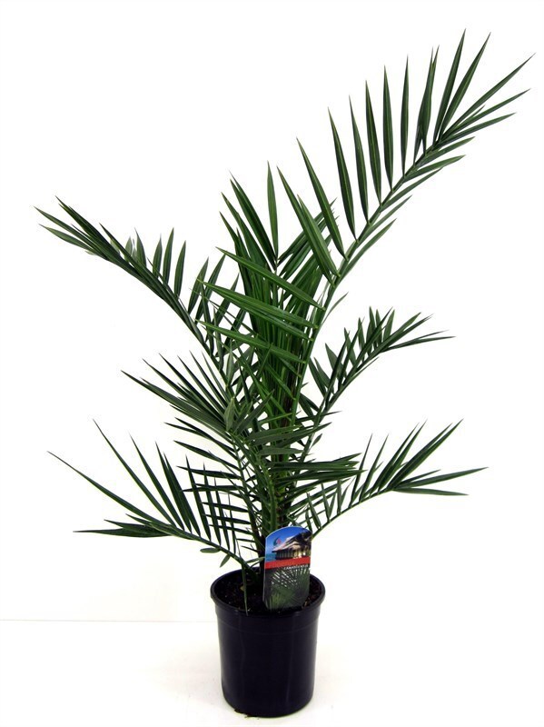 Крупная декоративная пальма с мощным прямым стволом и раскидистой кроной из перистых листьев длиной до 2 метров. Листья жёсткие, тёмно-зелёные, формируют эффектную розетку. Молодые экземпляры имеют компактную форму с коротким стволом, со временем вытягиваются, придавая интерьеру тропический вид. Отличается неприхотливостью и устойчивостью к засухе.