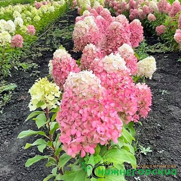 Крупный куст до 2–2,5 м с прямыми, мощными побегами, коричневато-красного оттенка у молодых приростов. Листья крупные, овальные, насыщенно-зелёные, плотные, длиной 12–18 см, с зазубренной кромкой. Соцветия конусовидные, длиной 30–35 см, белые с лёгким кремовым оттенком в начале цветения, к концу сезона розовеют. Цветки мелкие, собраны в плотные крупные соцветия, создавая эффектный декоративный акцент в саду.