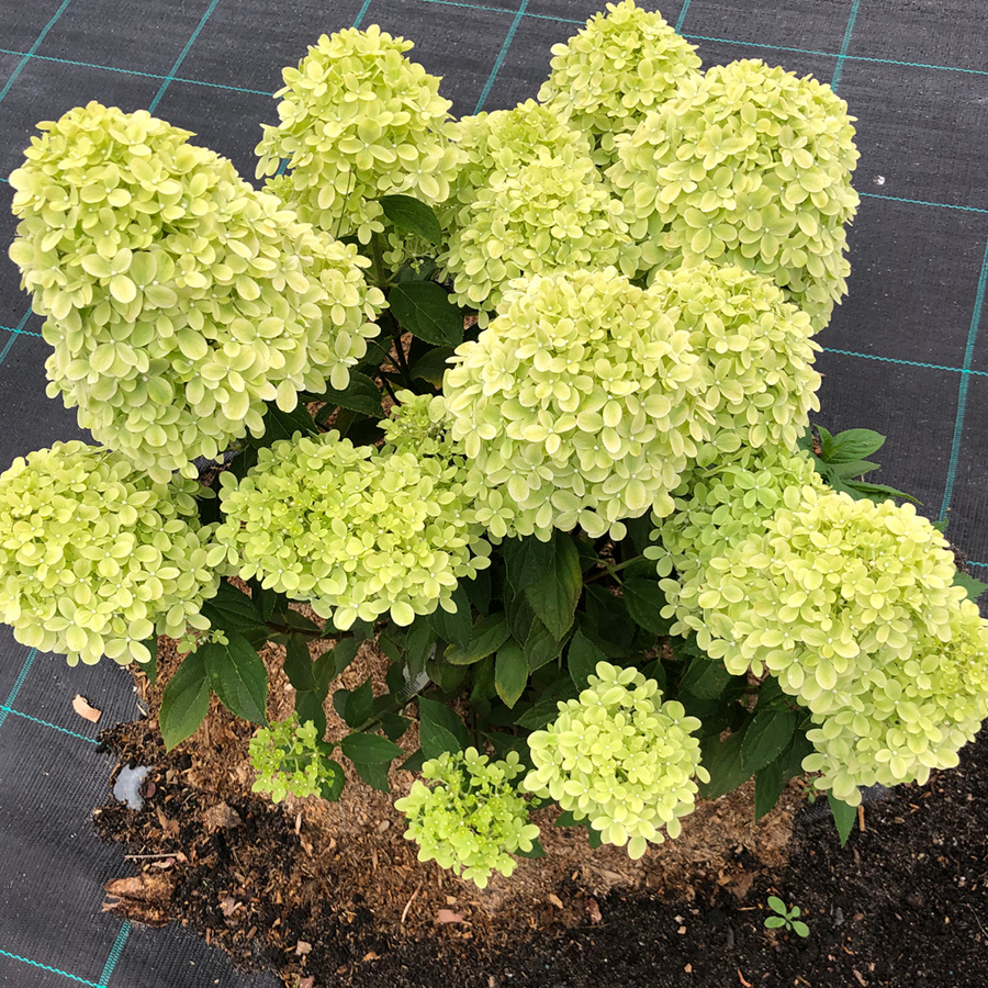 Компактный куст высотой до 1,2 м с густой кроной. Побеги прямые, прочные, слегка опущенные к концу сезона. Листья темно-зеленые, овальные, слегка морщинистые, с мягким глянцем, сохраняют декоративность до поздней осени. Цветки мелкие, собраны в плотные пирамидальные соцветия длиной 15–20 см. Соцветия кремово-белые, постепенно окрашиваются в мягкие розовые оттенки. Цветение начинается в середине июля и продолжается до конца сентября.