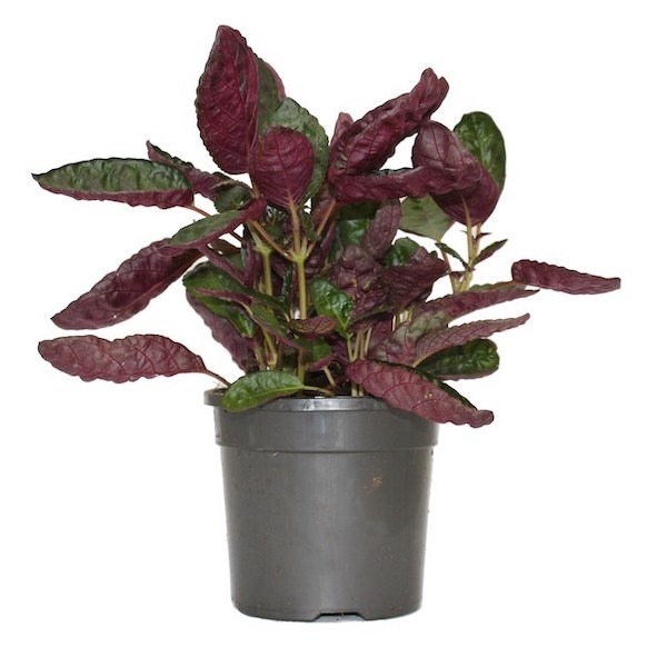 Декоративно-лиственное растение с необычным окрасом листвы. Листья волнистые, овальные, с металлическим отливом — верхняя сторона зелёная с серебристым блеском, нижняя насыщенно-фиолетовая. Куст низкий, густой, эффектно смотрится в кашпо и композициях.