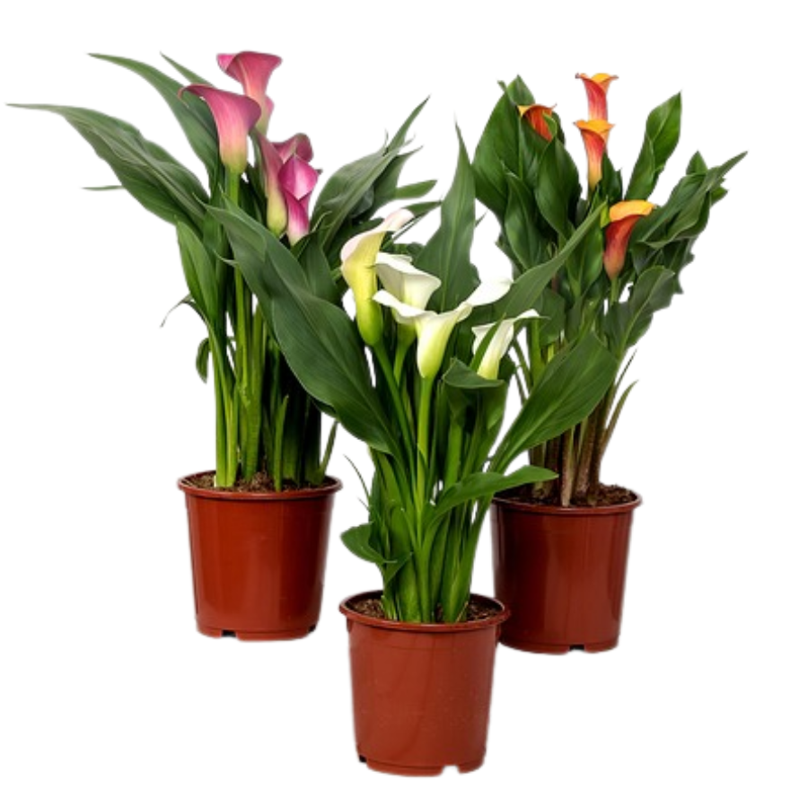 Декоративное клубневое растение с крупными тёмно-зелёными листьями и длинными цветоносами. Цветки воронкообразные, белые, жёлтые или розовые, появляются весной и летом, создавая эффектный декоративный акцент. Листья плотные, побеги формируют красивую декоративную крону.