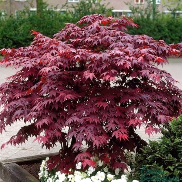 Декоративный кустарник или небольшое дерево высотой 3–5 м и шириной до 4 м. Листья ажурные, пальчато-рассечённые, насыщенно-пурпурные, сохраняют цвет всё лето, осенью становятся ярко-красными. Цветки мелкие, красноватые, появляются в мае. Используется в японских садах, как солитер и в контейнерных посадках.