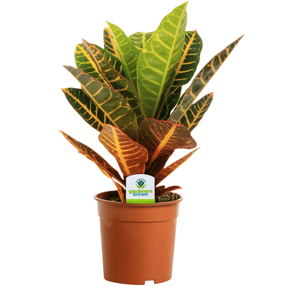 Декоративное растение с яркими, кожистыми листьями овальной формы. Окраска варьируется от зелёной до красной, жёлтой и оранжевой, прожилки контрастные и чётко выраженные. Крона густая и пышная, побеги прочные и прямостоячие. Кодиеум добавляет интерьеру тропические акценты и выглядит особенно эффектно при хорошем освещении.