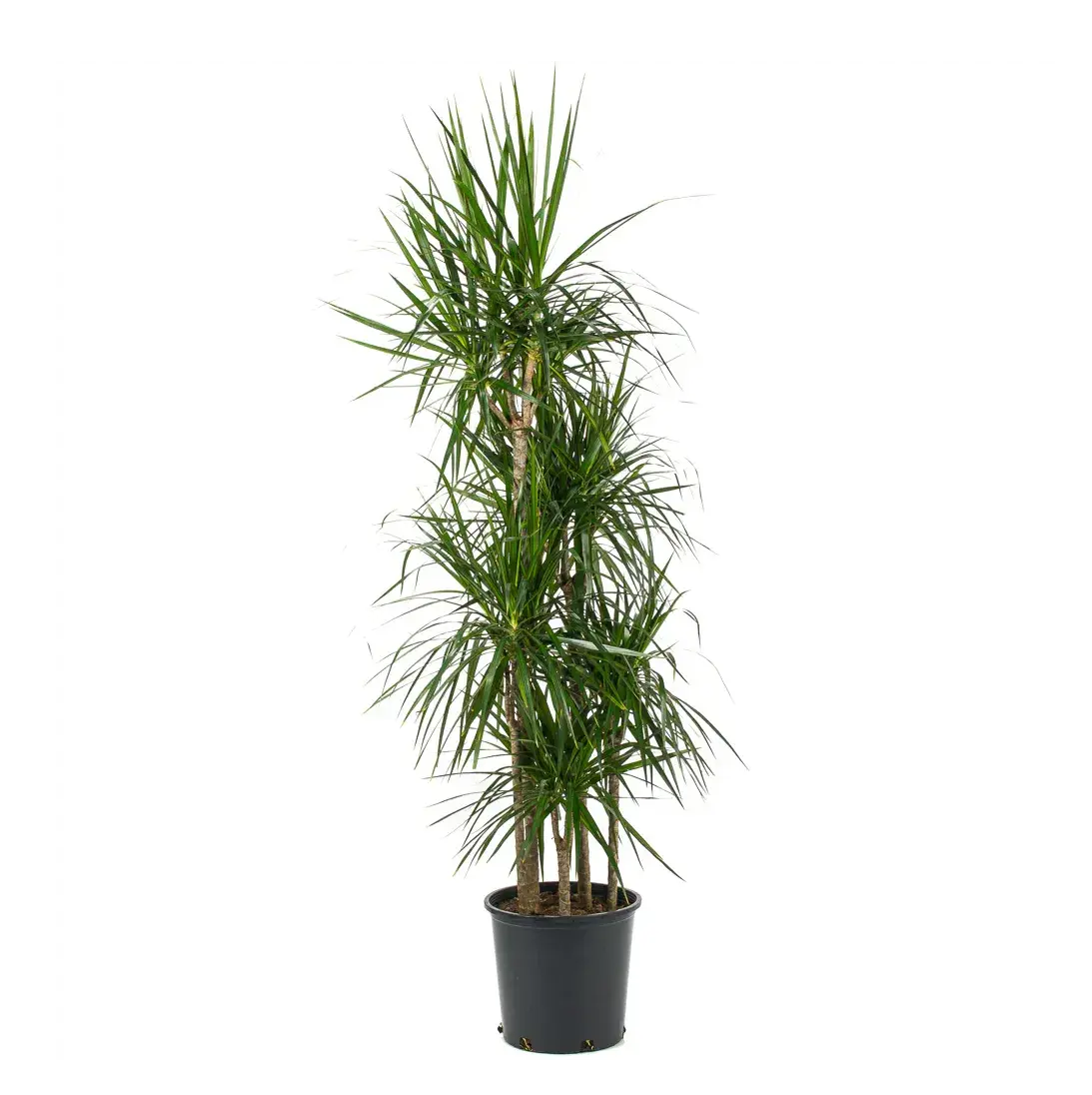 Высокое декоративное растение с тонкими вытянутыми листьями насыщенно-зелёного цвета с красной каймой. Листья растут пучками на верхушках тонких стволов, формируя изящную и лёгкую крону. Стволы со временем утолщаются, создавая декоративный вертикальный акцент в интерьере.