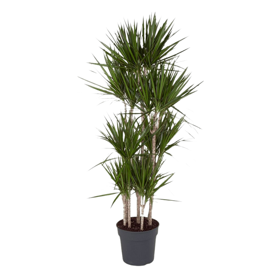 Высокое декоративное растение с тонкими вытянутыми листьями насыщенно-зелёного цвета с красной каймой. Листья растут пучками на верхушках тонких стволов, формируя изящную и лёгкую крону. Стволы со временем утолщаются, создавая декоративный вертикальный акцент в интерьере.