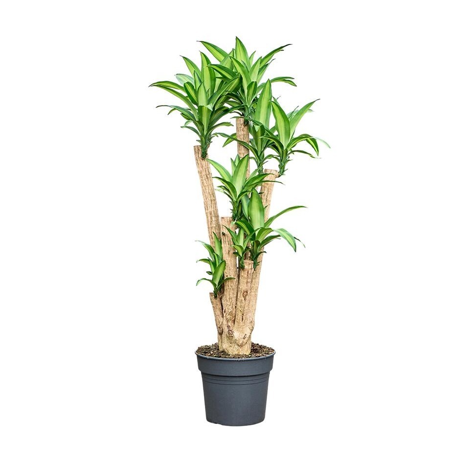 Крупномерное растение с прямым стволом и длинными узкими листьями насыщенно-зелёного цвета с ярко-жёлтой полосой по центру. Листья свисают изящными каскадами, образуя густую декоративную крону. Растение неприхотливо, хорошо переносит интерьерные условия, медленно растёт, создавая эффектный солитер.