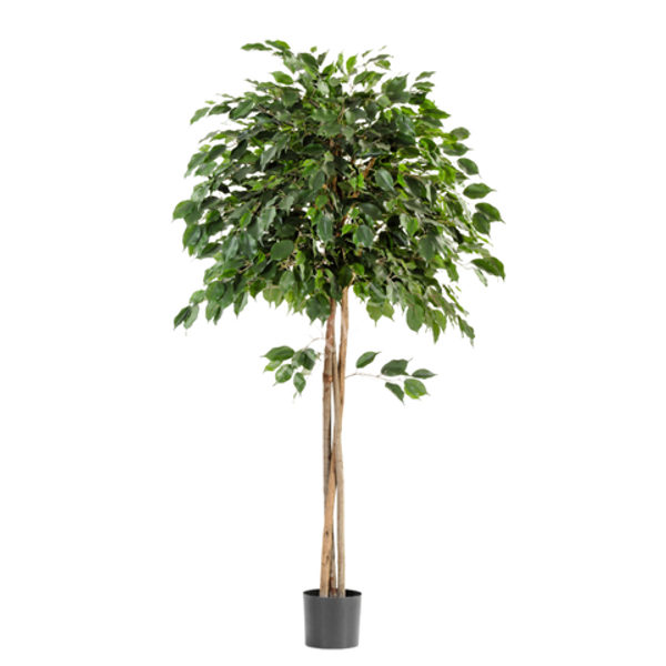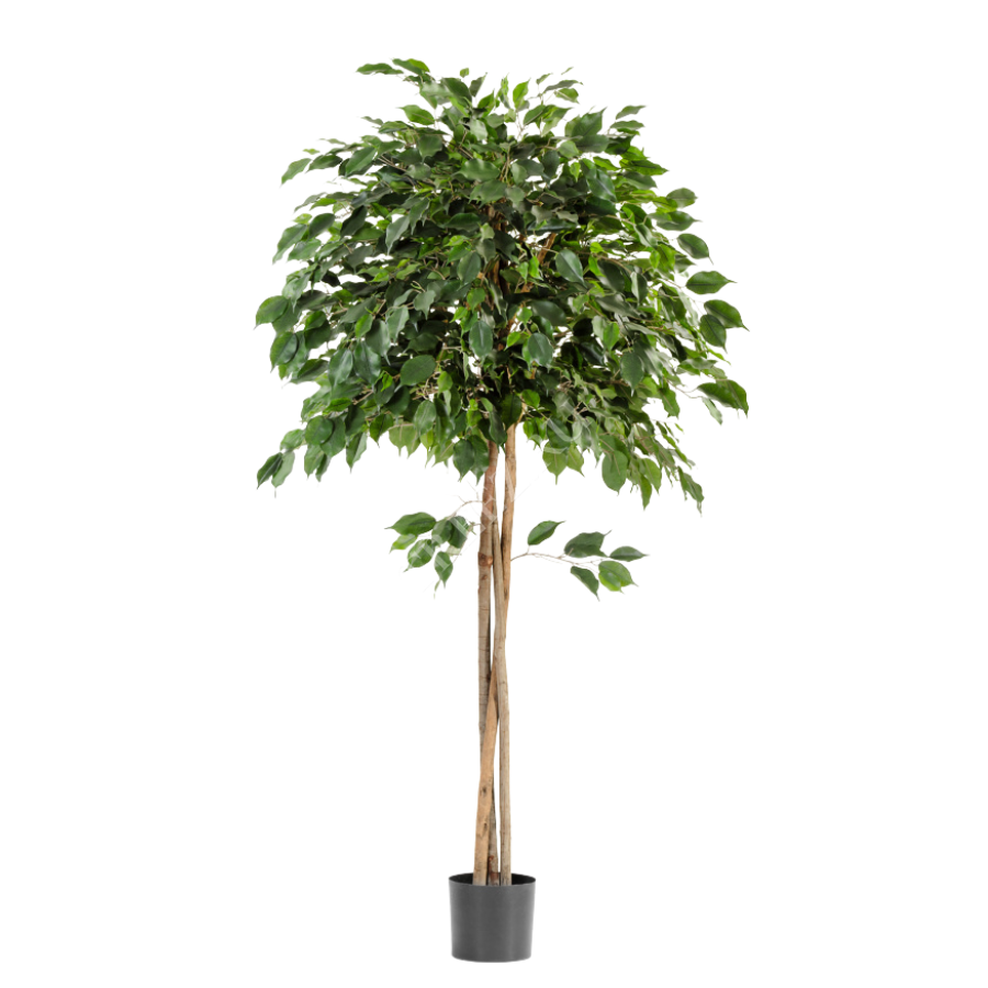 Крупное декоративное растение с тонкими гибкими ветвями и мелкими до средних овальными листьями тёмно-зелёного цвета. Крона густая, но воздушная, листья изящно свисают, создавая живую форму дерева. Ствол со временем утолщается, растение легко переносит формовку и идеально подходит для просторных интерьеров и офисов.