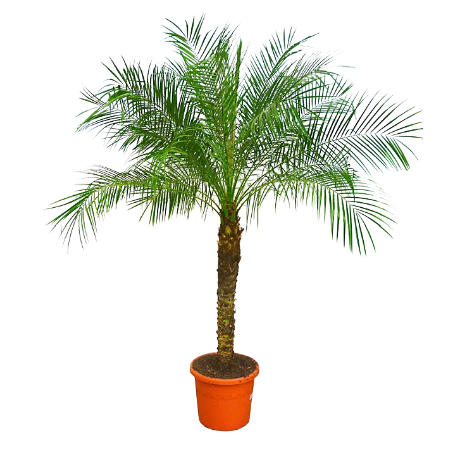 Крупномерная декоративная пальма с тонким изящным стволом и длинными перистыми листьями тёмно-зелёного цвета. Листья мягкие, слегка свисающие, образуют компактную, но густую декоративную крону.Отлично подходит для интерьеров, где требуется тропический акцент без громоздкой формы.