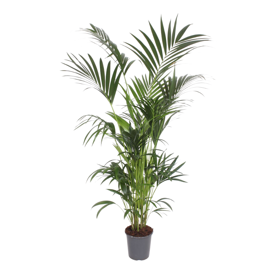 Крупная декоративная пальма с прямыми многочислеными стволами и крупными изящными перистыми листьями тёмно-зелёного цвета. Листья длинные, слегка изогнутые, создают воздушную крону средней плотности. Отлично переносит интерьерные условия и низкое освещение, медленно растёт и идеально подходит для офисов и просторных комнат.