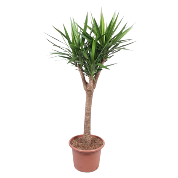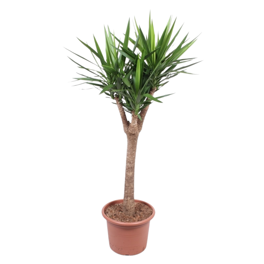 Крупное декоративное растение с прямым толстым стволом и длинными голубовато-зелёными мечевидными листьями, образующими декоративный плотный «шар» на вершине. Листья слегка свисающие, создают эффект экзотического растения. Идеально подходит для больших помещений и просторных офисов, создавая тропический акцент.