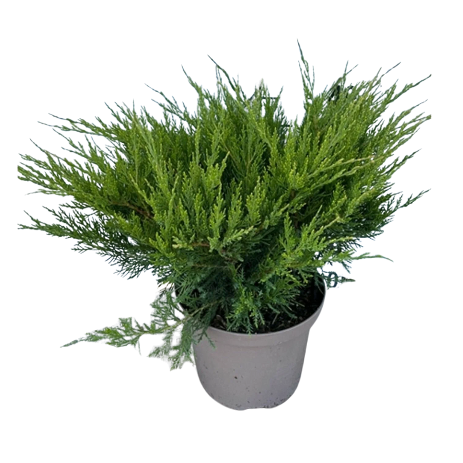 Раскидистый высокорослый хвойный кустарник с дугообразно изогнутыми побегами. Хвоя чешуйчатая, густая, насыщенно-зелёного цвета с лёгким изумрудным оттенком. Крона пышная, хорошо держит форму и легко поддаётся стрижке. Достигает высоты до 1,5 м и ширины до 3 м. Идеален для живых изгородей и декоративных групповых посадок.