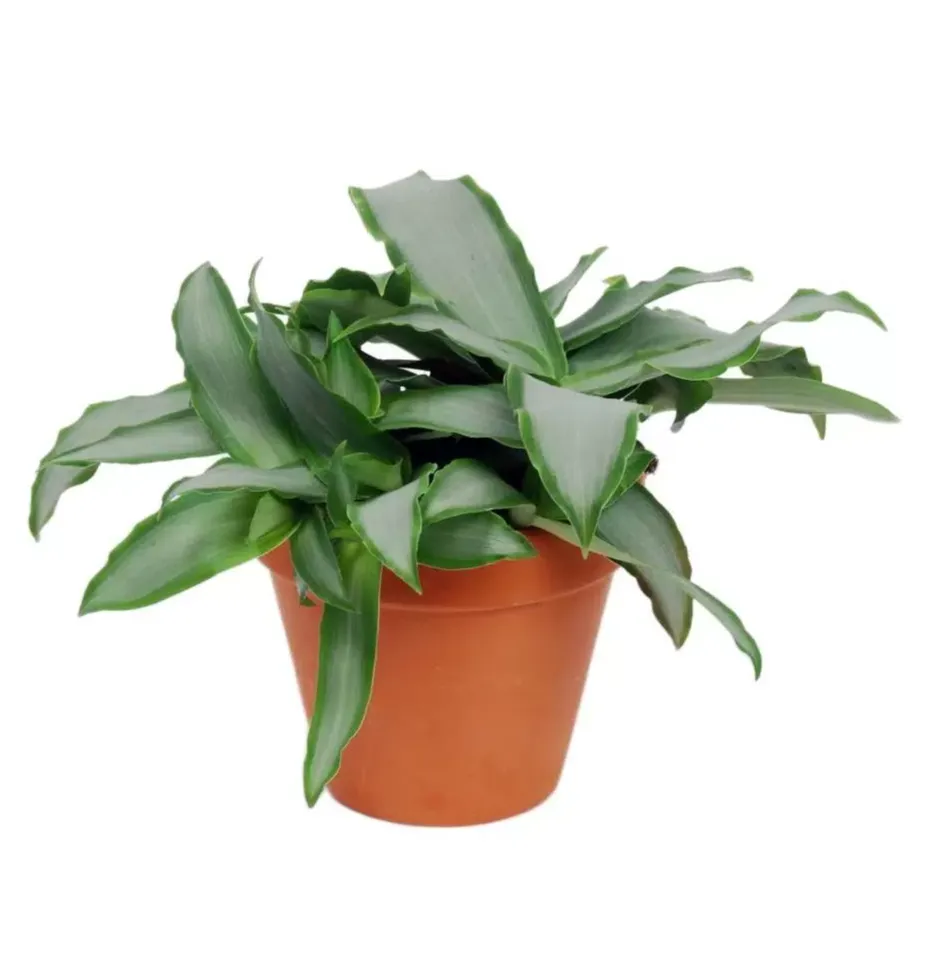 Компактное растение с удлинёнными ланцетными листьями, собранными в розетки. Листья зелёные с серебристым или пурпурным оттенком в зависимости от сорта. Выглядит аккуратно и декоративно, часто используется для композиций в кашпо.