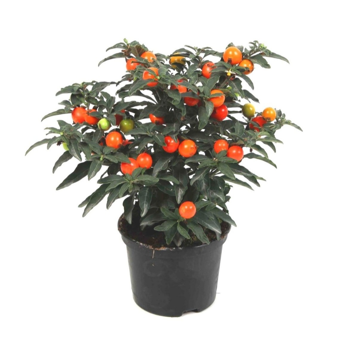 Декоративное кустистое растение с блестящими зелёными листьями и яркими оранжево-красными ягодами, сохраняющими декоративность зимой.