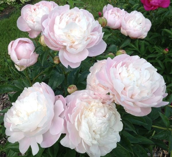 Эффектный сорт с крупными густомахровыми цветками молочно-белого оттенка с лёгким розовым напылением в центре. Лепестки плотные, слегка волнистые, образуют пышный шар диаметром до 18–20 см. Цветение обильное, среднепозднее, продолжается 2–3 недели. Куст мощный, прямостоячий, высотой 90–100 см, с крепкими стеблями, которые хорошо держат тяжёлые бутоны. Листва насыщенно-зелёная, сохраняет декоративность до осени. Цветы отличаются приятным ароматом и подходят для срезки.