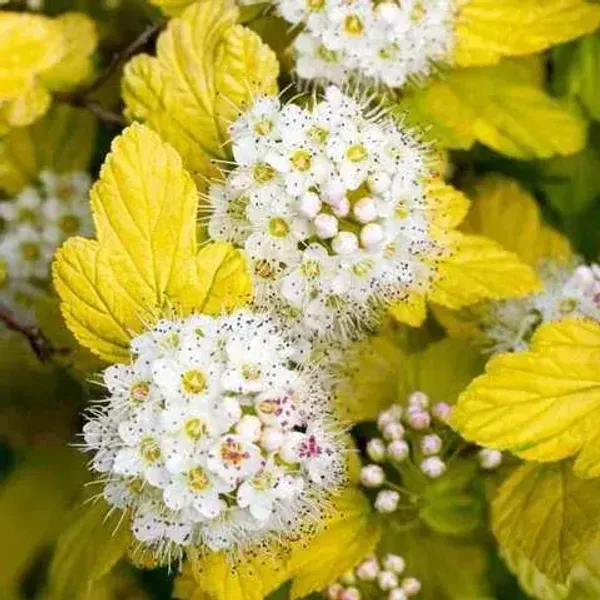 Декоративный кустарник высотой 2–2,5 м и шириной до 2 м. Листья крупные, золотисто-жёлтые, не выгорают на солнце. Цветки белые, собраны в щитки диаметром до 5 см, появляются в июне. Используется для живых изгородей, солитеров и цветовых контрастов в саду.