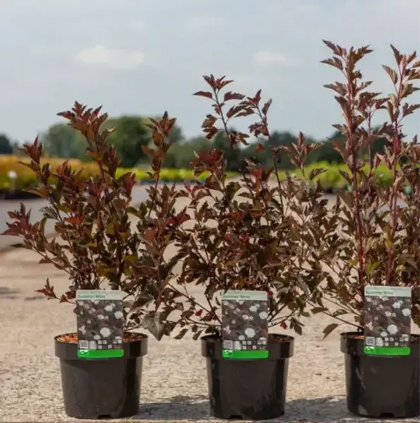 Кустарник высотой 1,5–2 м и шириной до 1,5–2 м. Листья тёмно-бордовые, летом приобретают винный оттенок. Цветки белые или розоватые, появляются в июне. Отличается густой кроной и устойчивостью. Используется в живых изгородях, группах и солитерных посадках.