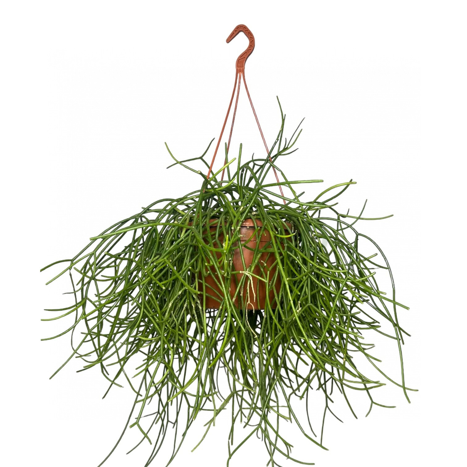Ампельный эпифитный кактус с тонкими, цилиндрическими или плоскими подушкообразными побегами, образующими каскады длинных нитей. Побеги могут быть гладкими или слегка ребристыми, зелёные или серовато-зелёные, иногда с лёгким опушением. Цветёт мелкими, незаметными, но многочисленными цветками, затем образует мелкие ягодовидные плоды. Рипсалис ценят за эффектные свисающие формы, мягкую текстуру и неприхотливость — хорошо растёт в полутени и любит повышенную влажность воздуха. Отличный выбор для подвесных кашпо и живых стен.