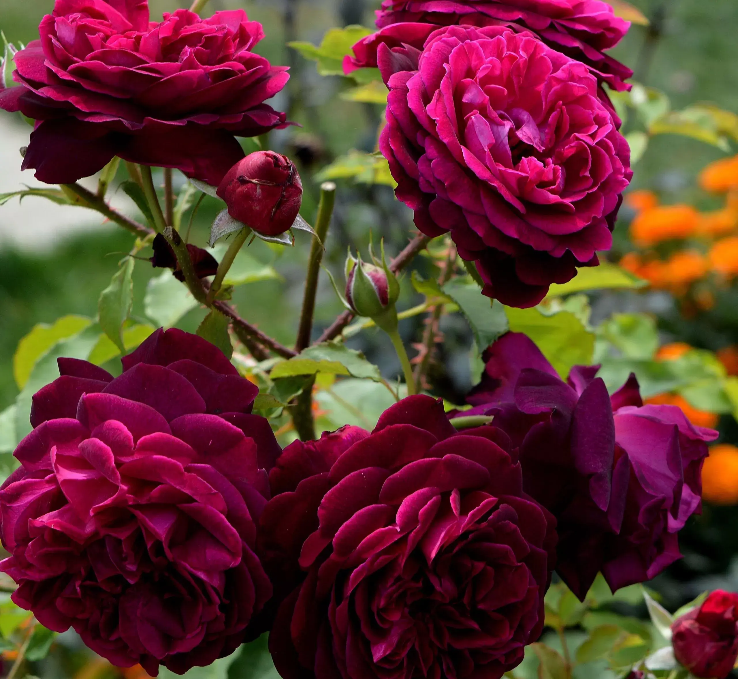 Английская роза с густомахровыми цветками насыщенного бордово-пурпурного цвета, диаметром до 10 см. Цветки обладают сильным фруктовым ароматом с нотами ежевики и сливы. Цветение обильное, волнами, с июня до осени. Куст округлый, плотный, высотой около 100 см, с густой листвой тёмно-зелёного цвета. Прекрасно смотрится в розариях и ароматных садах.