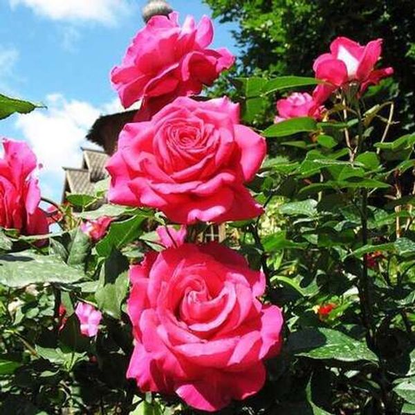 Элегантный сорт с крупными густомахровыми цветками насыщенно-малинового оттенка с бархатистыми лепестками. Цветки диаметром до 11 см, аромат сильный, сладкий. Цветение обильное, повторное, с июня до осени. Куст прямостоячий, высотой до 120 см, листья плотные, тёмно-зелёные. Используется для срезки и украшения садов.