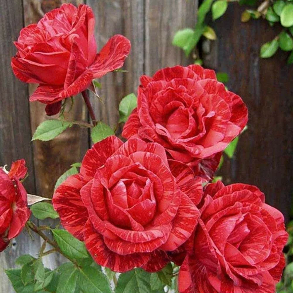 Один из самых эффектных сортов с крупными бокаловидными цветками насыщенно-красного цвета с тёмными штрихами. Диаметр бутонов 10–12 см. Цветки стойкие, долго не увядают. Цветение длительное, повторное. Куст прямостоячий, до 110 см высотой, с плотной листвой. Используется в срезке и декоративных композициях.