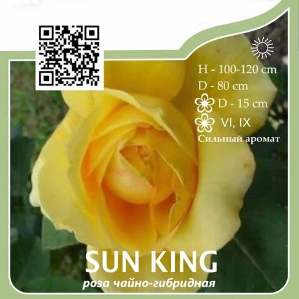 Яркая роза с крупными бокаловидными цветками золотисто-жёлтого цвета с мягким ароматом. Диаметр бутонов 10–11 см. Цветение обильное и длительное, с июня по октябрь. Куст прямостоячий, высотой до 120 см, с густой блестящей листвой. Отлично смотрится в одиночных и групповых посадках.