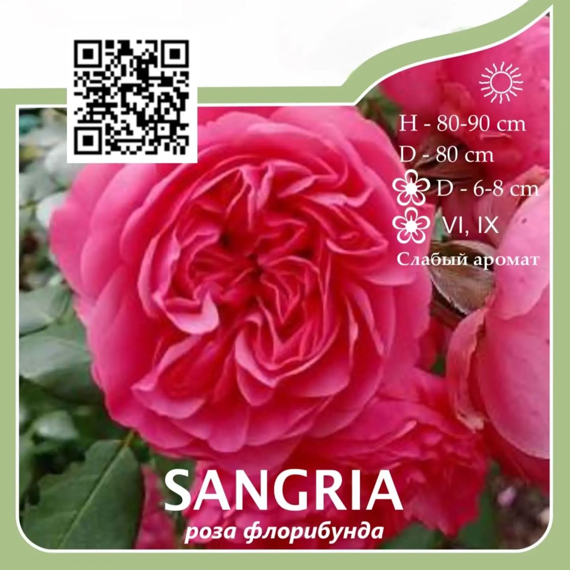 Флорибунда с густомахровыми малиново-розовыми цветками диаметром 8 см. Цветки собраны в соцветия и держатся на кусте долго, не теряя окраски. Цветение обильное, с июня до поздней осени. Куст аккуратный, плотный, высотой 80–90 см. Устойчив к выгоранию и дождю. Подходит для бордюров и декоративных клумб.