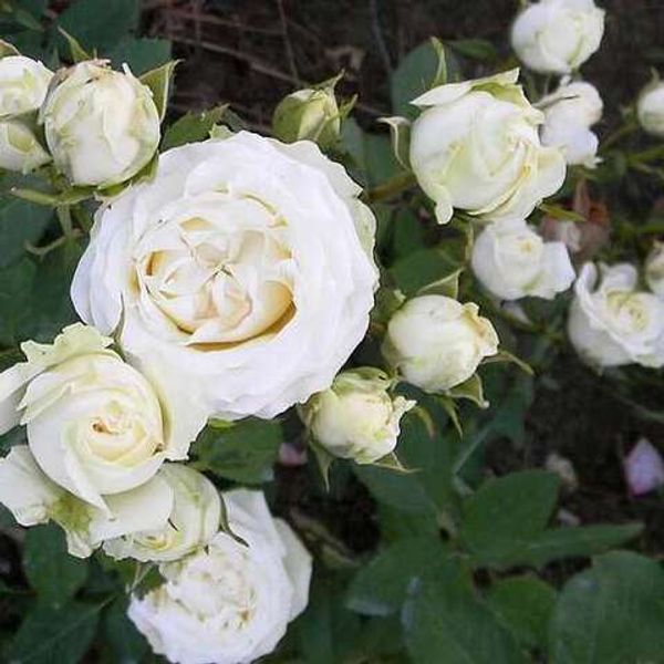 Почвопокровная роза с изящными белоснежными цветками диаметром около 4–5 см, собранными в плотные кисти. Цветение обильное и длительное, с июня по сентябрь. Листва густая, глянцевая, устойчива к грибковым заболеваниям. Высота куста 40–50 см, ширина до 70 см. Используется в бордюрах, контейнерах, миксбордерах и при оформлении склонов.