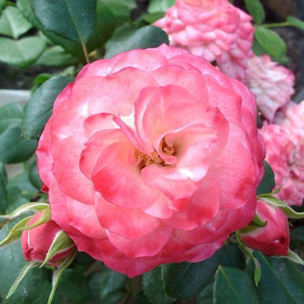 Эффектная шраб-роза с крупными густомахровыми бархатистыми цветками насыщенно-малинового оттенка диаметром 8–10 см. Цветы обладают приятным ароматом и долго не вянут. Цветение обильное, повторное, с июня до осени. Куст прямостоячий, раскидистый, высотой до 120 см. Листья тёмно-зелёные, блестящие. Применяется для живых изгородей, одиночных и групповых посадок.