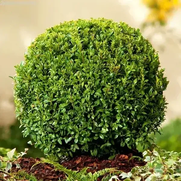 Низкорослый сорт или стриженная форма самшита с плотной шаровидной кроной. Высота 0,5–1 м, ширина до 1 м. Листья мелкие, вечнозелёные, тёмно-зелёные, сохраняют декоративность круглый год. Используется для бордюров, в контейнерах, на террасах, в рокариях и композициях.