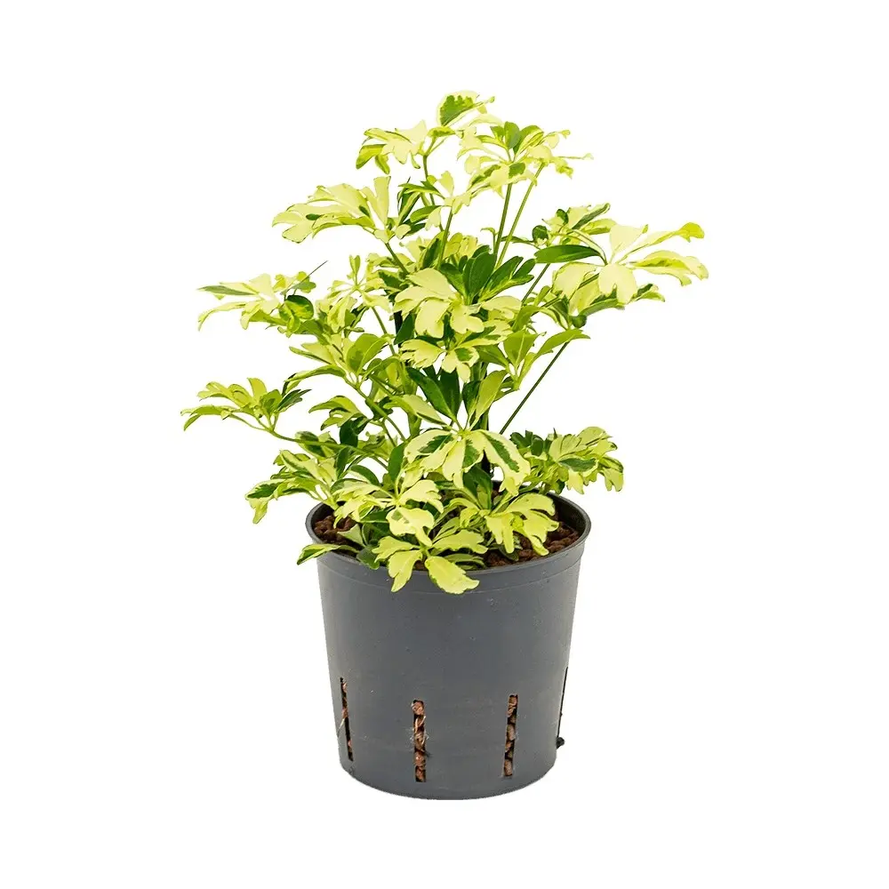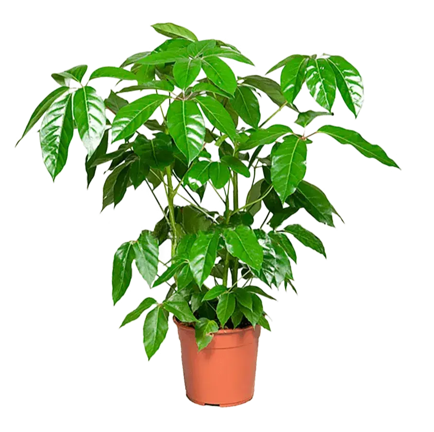 Kуст с пальчатыми листьями насыщенно-зелёного цвета, образующими пышную крону. Листья глянцевые, овальные, с заострёнными концами, стебли прочные. Растение медленно растёт, хорошо переносит формовку и подходит для штамбовых форм. Отлично подходит для интерьеров с минималистичным дизайном.