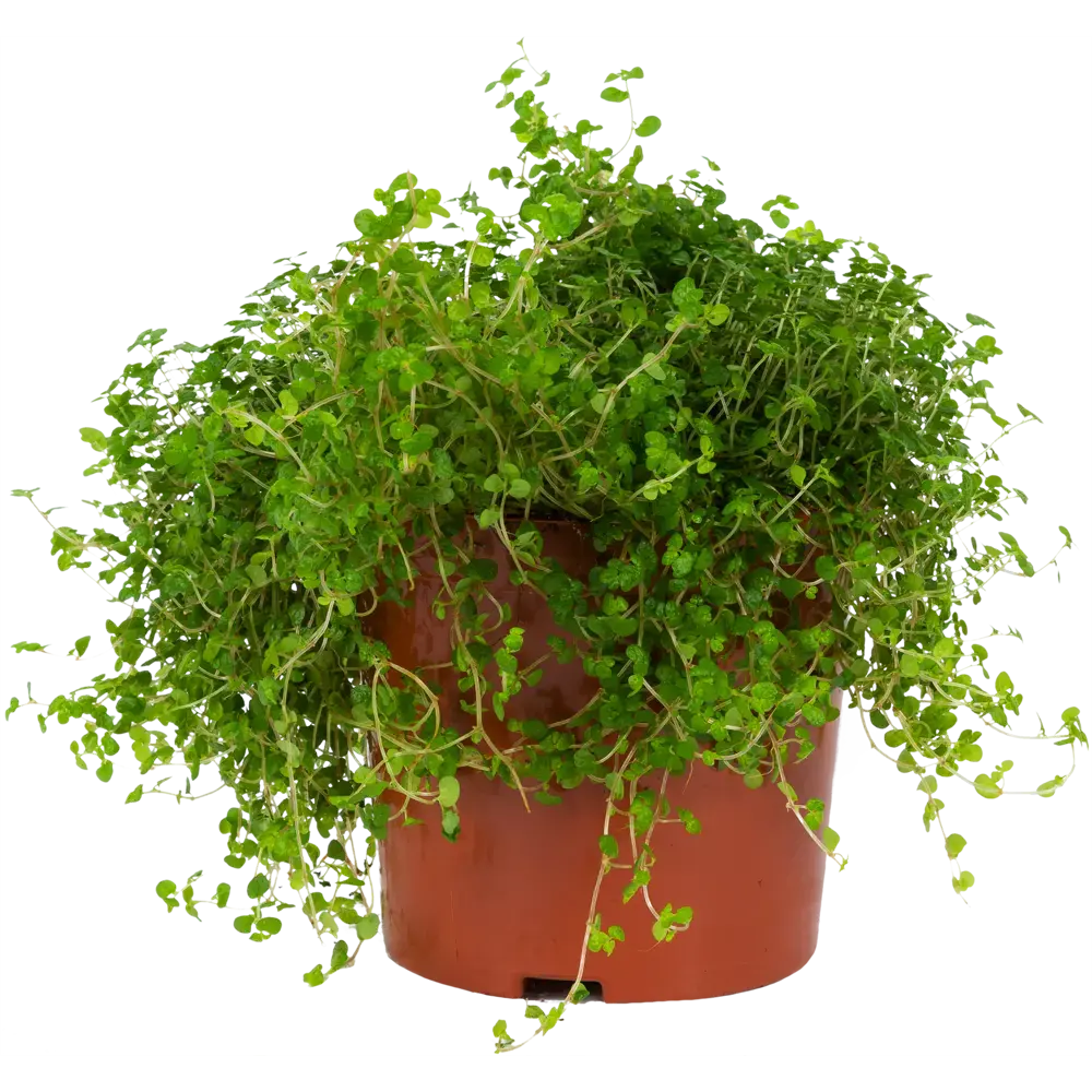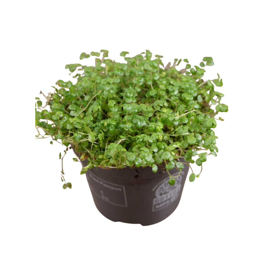 Нежное ампельное растение с множеством тонких побегов, покрытых крошечными округлыми листочками, образующими густую зелёную подушку. Листва мягкая, свежая на вид, создаёт впечатление миниатюрного ковра. Солейролия быстро растёт и может использоваться как почвопокровное растение в больших горшках или террариумах. Любит высокую влажность, регулярный полив и стабильную температуру без сквозняков.