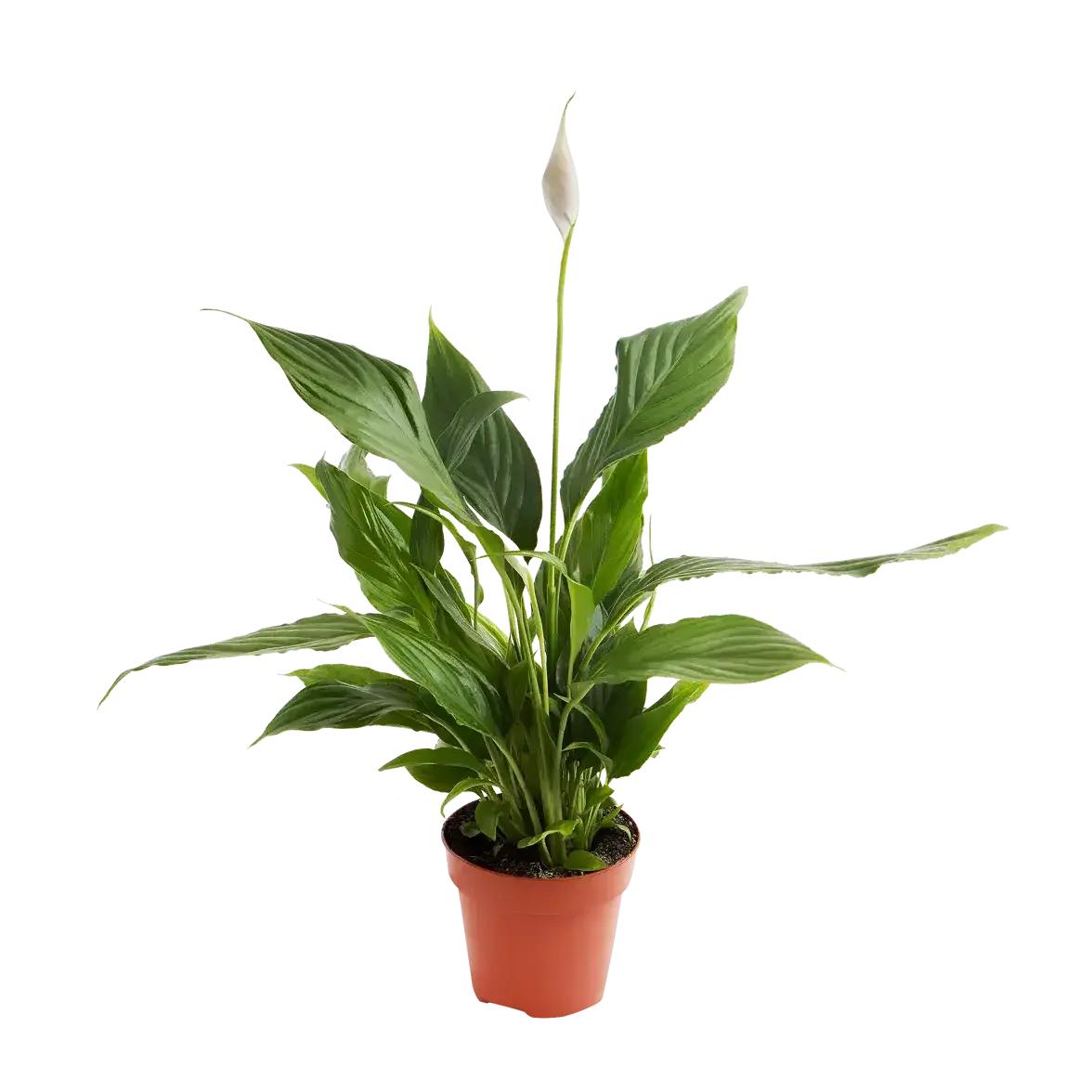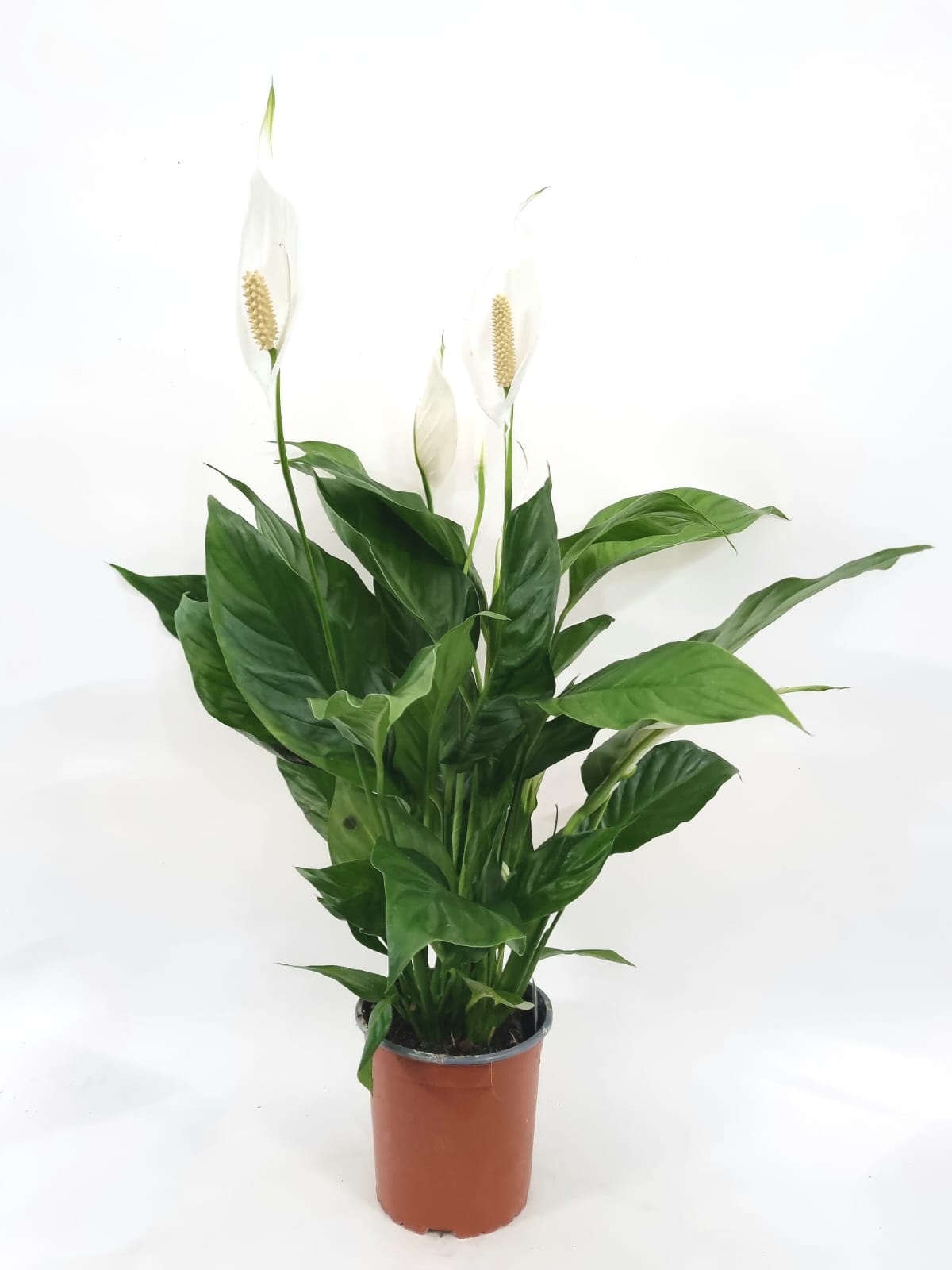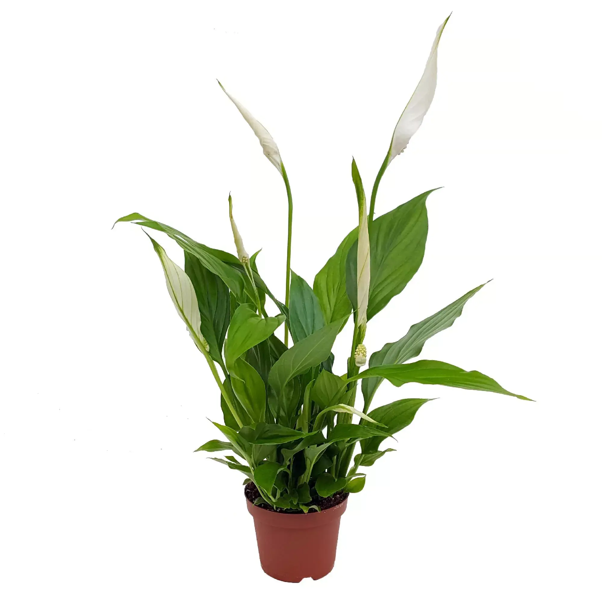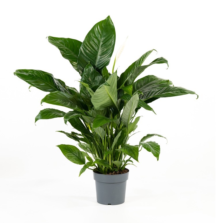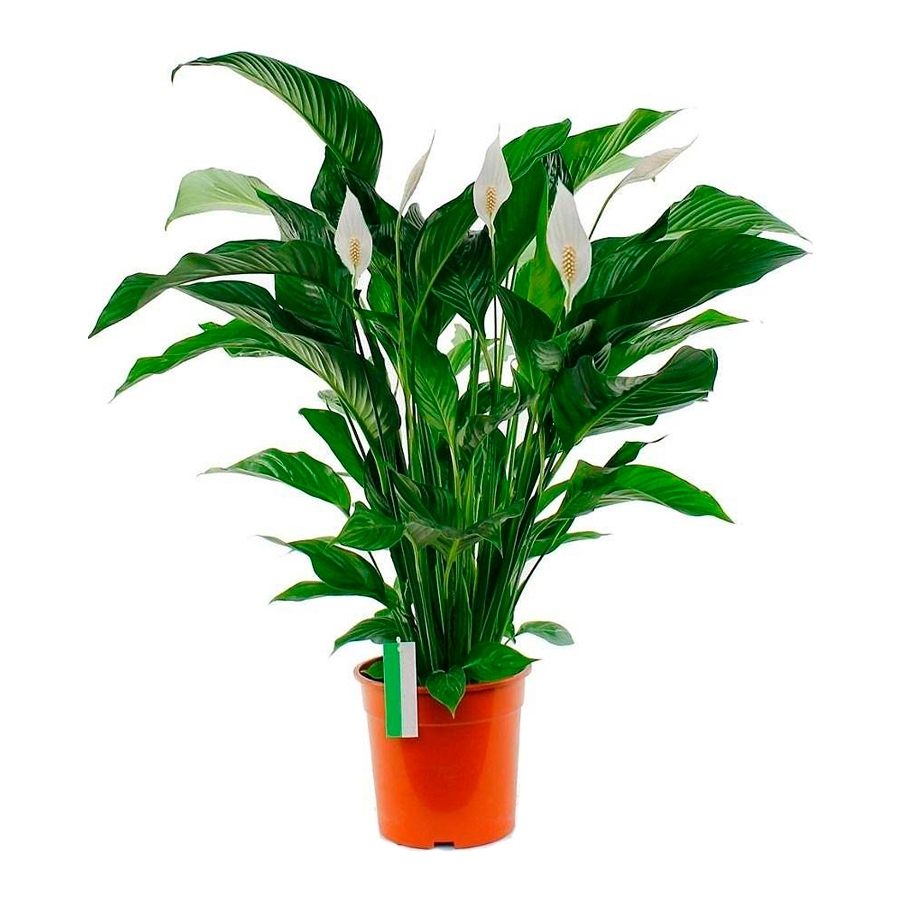 Популярное декоративно-цветущее растение с крупными глянцевыми листьями и утончёнными белыми покрывалами, окружающими светлое соцветие-початок. Листья продолговатые, насыщенно-зелёные, формируют густую пышную розетку. Цветение продолжительное, а при хорошем уходе — почти круглогодичное. Спатифиллум известен как «женское счастье», символизирующее гармонию и уют в доме. Хорошо очищает воздух и переносит слабое освещение.