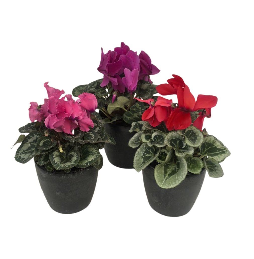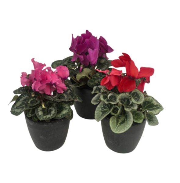 Декоративное клубневое растение с овальными или сердцевидными зелёными листьями с серебристыми рисунками. Побеги прямые или слегка изогнутые. Цветки крупные, нежные, разнообразной окраски — розовые, красные, белые, появляются осенью и зимой, украшая растение длительное время.