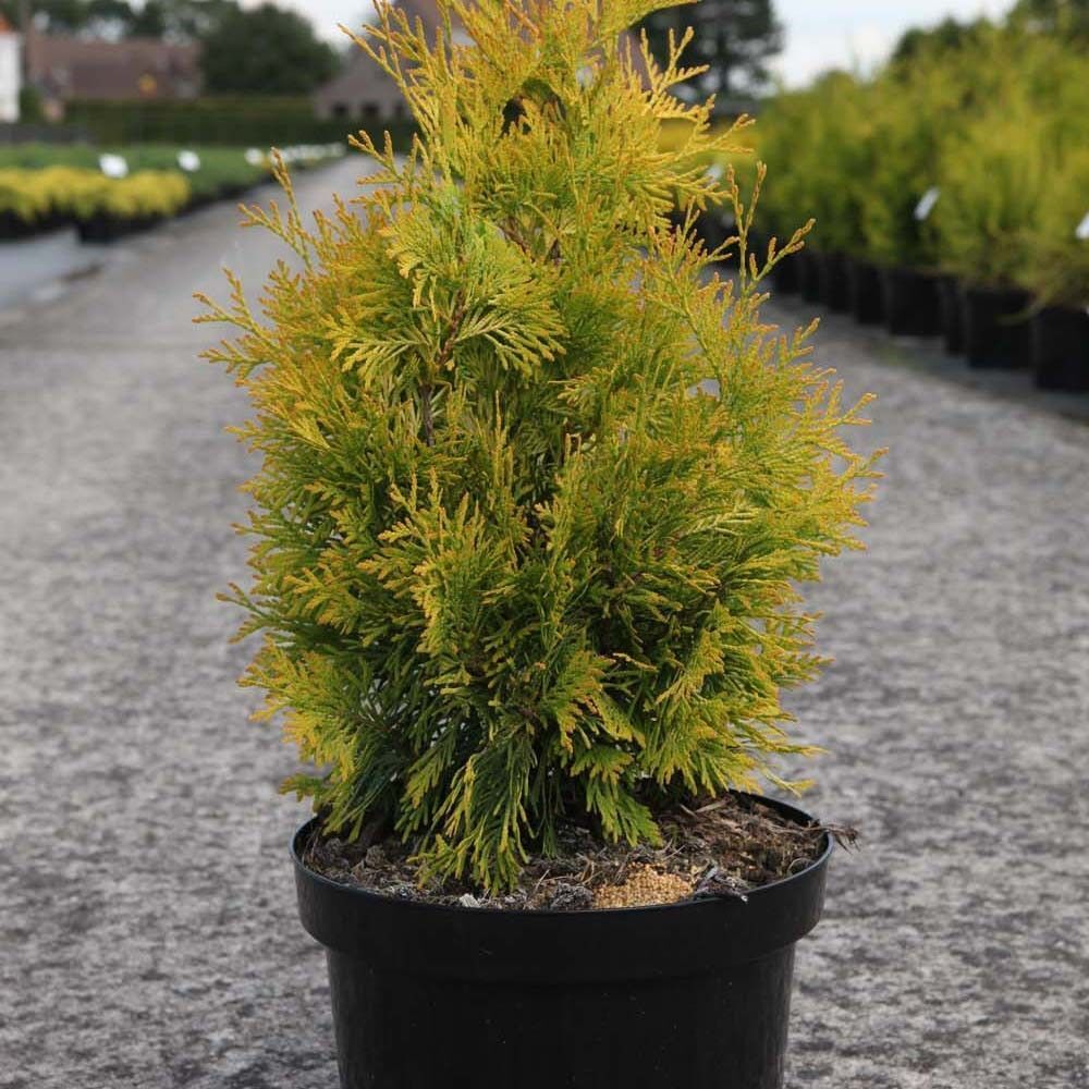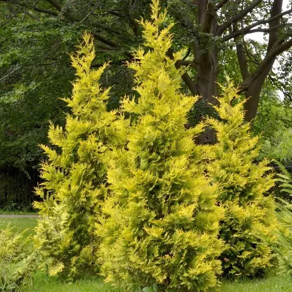 Декоративный сорт с узкой колонновидной кроной и золотисто-жёлтой хвоей, которая сохраняет яркий оттенок круглый год. Высота взрослого растения 3–4 м, ширина около 1 м. Отличается плотным вертикальным ростом и эффектным контрастным цветом. Подходит для живых изгородей и солитерных посадок.