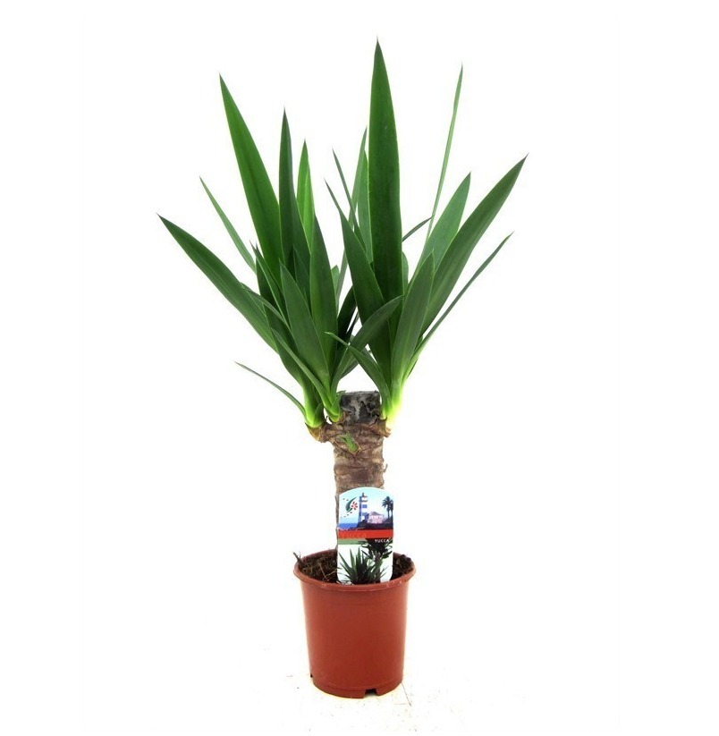Декоративное растение с прямыми, древеснеющими стеблями и длинными мечевидными листьями тёмно-зелёного цвета с жёсткой текстурой. Листья растут розеткой, формируя выразительную крону, которая придаёт растению скульптурный вид. Юкка медленно растёт, неприхотлива, устойчива к засухе и легко переносит сухой воздух в помещении.